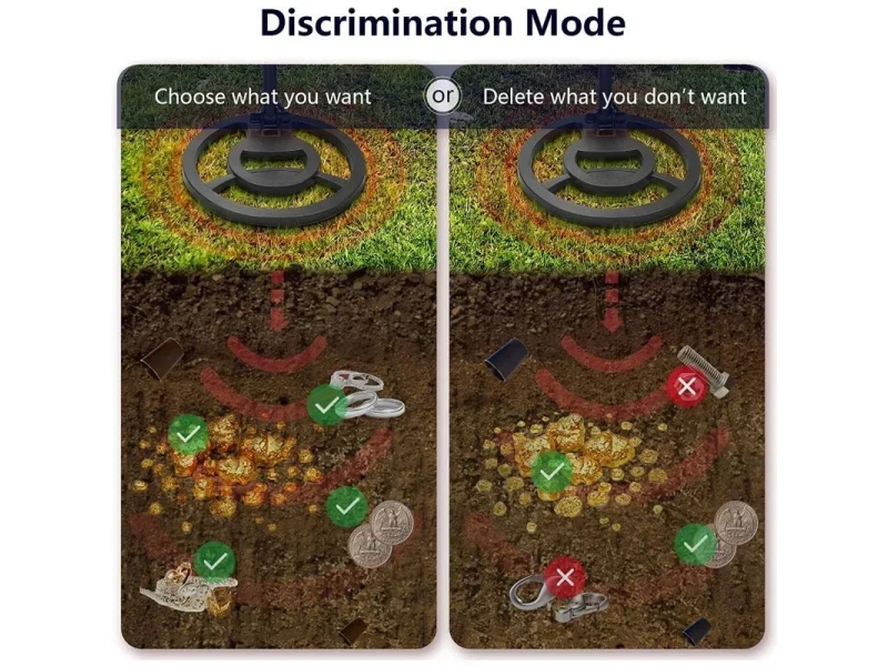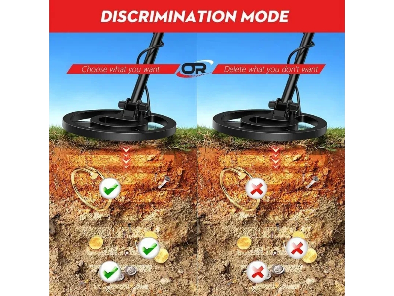 Aceasta functie permite detectorului sa faca distinctia intre tipurile de metale si, mai precis, sa distinga tipurile de metale feroase de metalele neferoase (aur, argint, cupru, aluminiu, zinc, plumb, platina). Acest lucru va permite sa filtrati obiecte mici, cum ar fi capace, cantare sau cioburi.