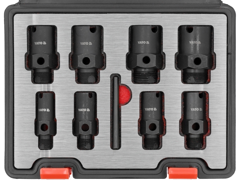 Kitul de reparare a filetelor YATO YT-17600 pentru filete interne și externe, precum și pentru corectarea filetelor. Poate fi utilizat pentru repararea arborilor de transmisie, a senzorilor de oxigen, a șuruburilor de roată, a capetelor de arbori și multe altele.
