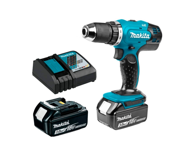 Mașină de găurit și înșurubat Makita DDF453RFE - este un dispozitiv convenabil și fiabil, foarte popular în rândul meșterilor. Vă permite să lucrați rapid și fără nicio problemă suplimentară la strângerea elementelor de fixare și la crearea de găuri în diverse materiale. Principiul a mandrinei fără cheie economisește timp pentru schimbarea sculelor. Modelul este alimentat de la o baterie și nu are nevoie de cablu de alimentare, ceea ce îl face mobil. Carcasa are orificii de ventilatie care impiedica supraincalzirea motorului. Răcirea la timp crește durata de viață a componentelor interne. Datorită reversului, axul dispozitivului se rotește în ambele direcții, ceea ce permite atât răsucirea, cât și derularea echipamentului. Mânerul cauciucat al mașinii de găurit cu acumulator se potrivește confortabil în mână și nu alunecă din ea în timpul funcționării. Livrarea se efectuează într-o cutie specială pentru un transport convenabil, fără pierderea componentelor.