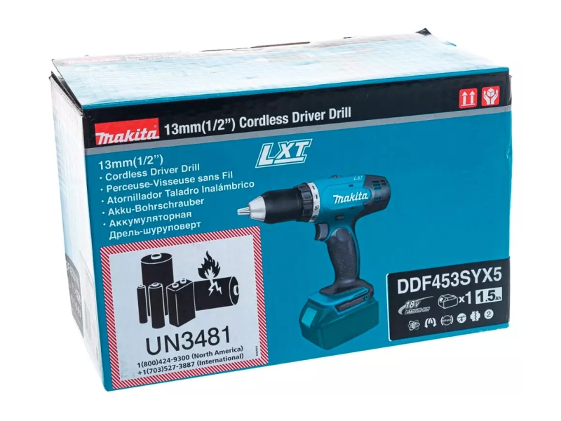 Masina de gaurit si insurubat Makita DDF453SYX5 cu acumultator - Este un instrument profesional pentru găurire și înșurubare, care funcționează pe bază de baterie. Mandrina universală permite schimbarea rapidă a accesoriilor și a biturilor. Makita DDF453SYX5 dispune de un reductor cu două viteze și roți dințate metalice pentru o durată lungă de viață. Makita DDF453SYX5 cântărește doar 1,6 kg și este extrem de comodă în timpul lucrărilor de reparație și construcție. Dispune de o mânere din cauciuc antiderapant care absoarbe vibrațiile.