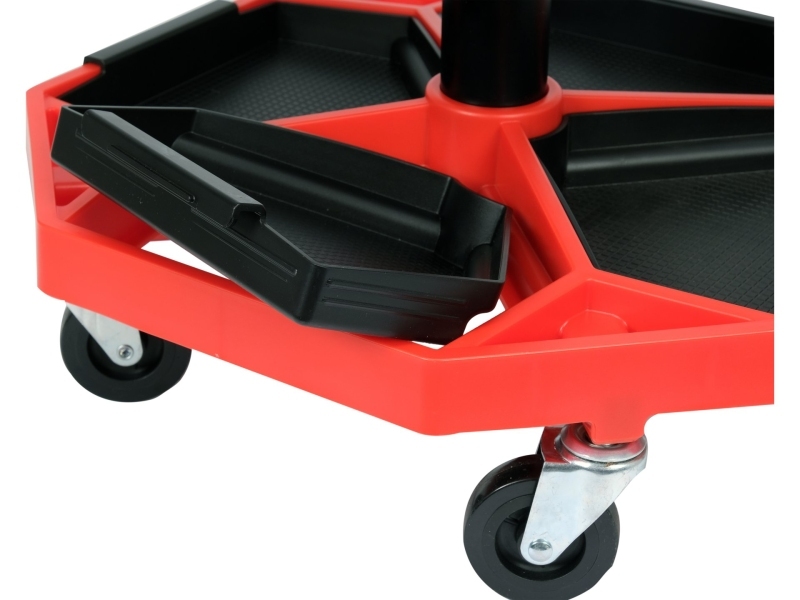 Scaun de atelier pivotant cu inserții pentru depozitarea pieselor mici.