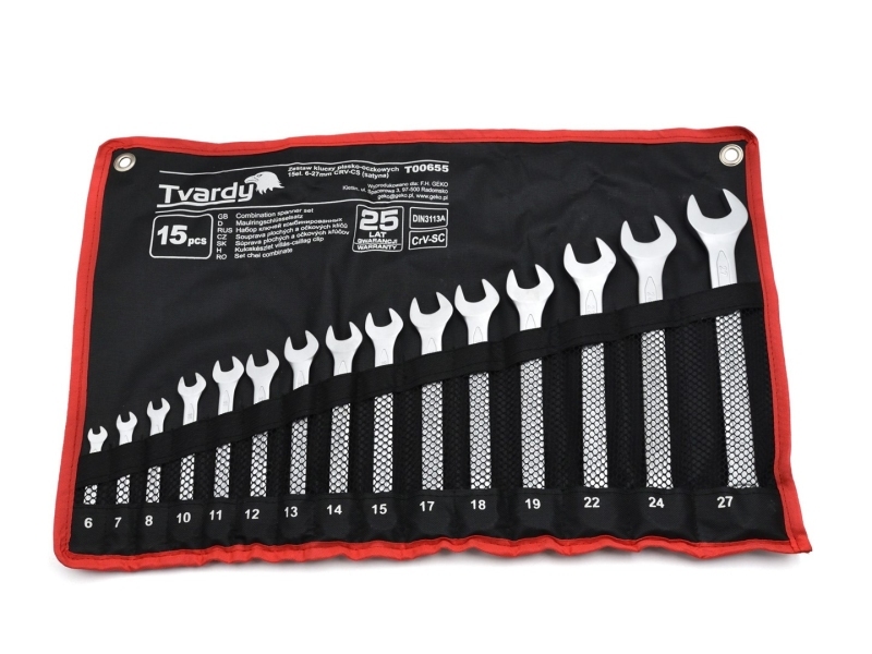 Descriere: Set 15 chei combinate 6-27mm din otel CRV Tvardy T00655