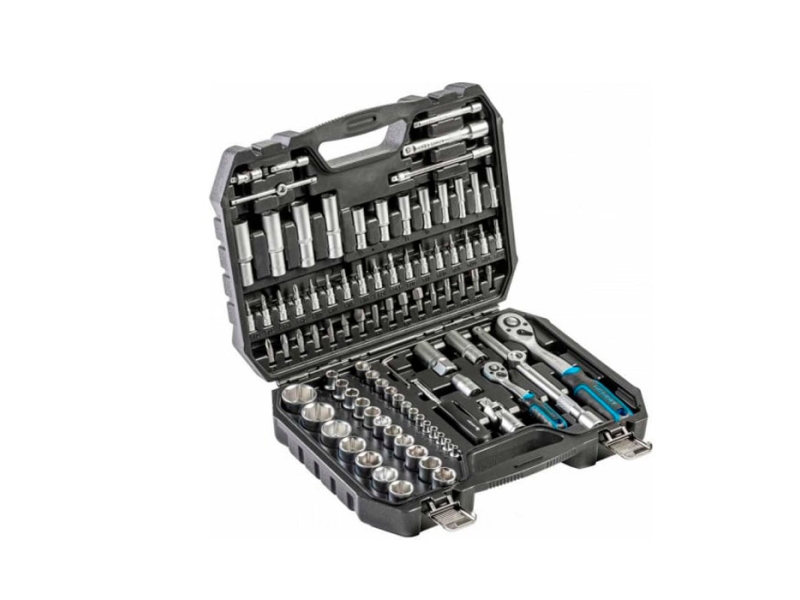 Set de capete tubulare si accesorii Hoegert HT1R226 95 buc. - set de prize, biți de șurubelniță, accesorii de 1/4" și 1/2" și chei combinate. Prizele, biți, accesoriile și cheile sunt fabricate din oțel aliat CrV de înaltă calitate. Rezistent la sarcini intense. Fabricat prin forjare. Clichetele cu clichet cu 72 de dinti sunt realizate din otel aliat CrMo, crescand fiabilitatea si durabilitatea mecanismului. Setul vine intr-o carcasa cu incuietori metalice si balamale.