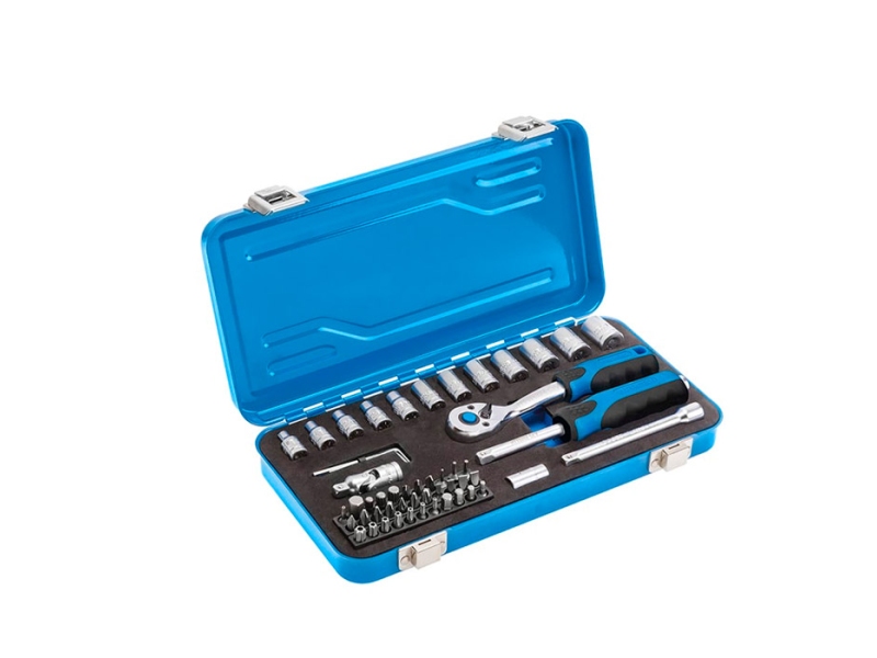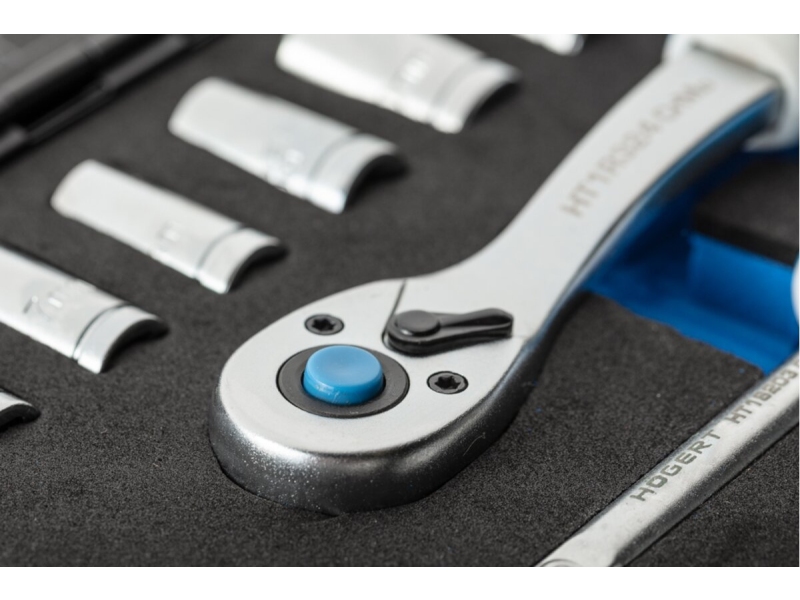 Set de capete tubulare si accesorii Hoegert HT1R485 53 buc. - pentru ateliere de asamblare, service auto, precum și pentru uz privat. Furnizat într-o carcasă durabilă din plastic cu poziții individuale. Bițile sunt fabricate din oțel S2, care are o rezistență ridicată și rezistență la rupere și rupere. Clichetul este echipat cu un tampon din două componente.