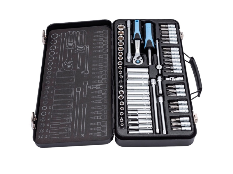 Set de capete tubulare si accesorii Hoegert HT1R486 63 buc. - pentru ateliere de asamblare, service auto, precum și pentru uz privat. Furnizat într-o carcasă durabilă din plastic cu poziții individuale. Bițile sunt fabricate din oțel S2, care are o rezistență ridicată și rezistență la rupere și rupere. Clichetul este echipat cu un tampon din două componente.