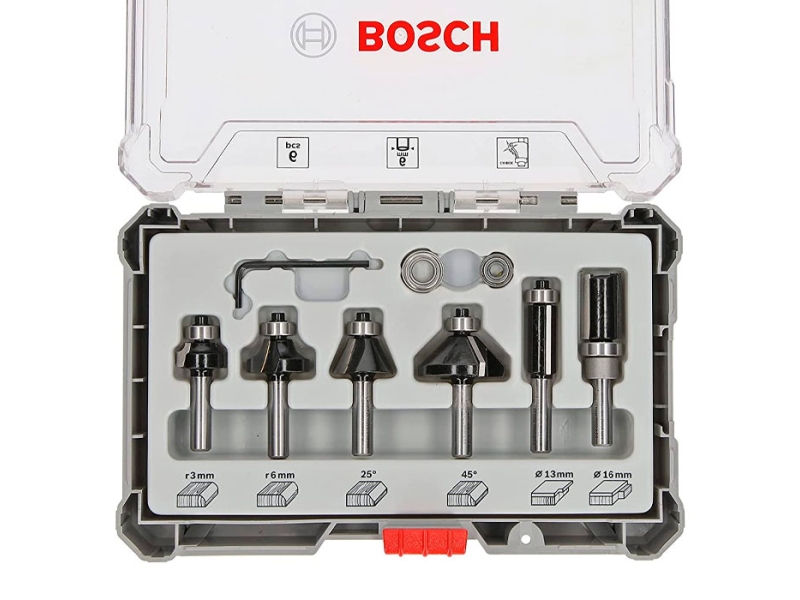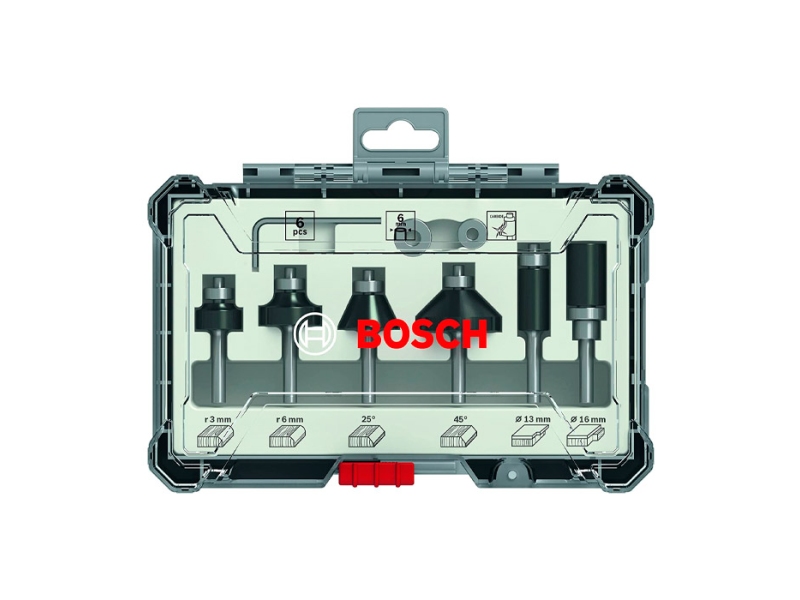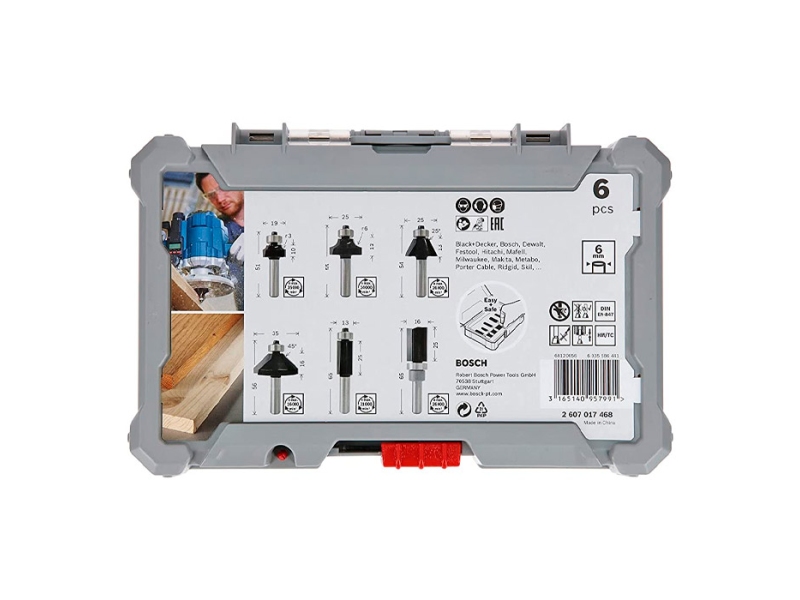 Set de freze pentru lemn Bosch (2607017468) - este un set de consumabile destinate mașinilor de frezat de tip vertical. Cu ajutorul elementelor de echipamente incluse în acesta și cu disponibilitatea echipamentelor adecvate, veți putea efectua lucrări de construcție, finisare și instalare. De asemenea, procesul de frezare este foarte solicitat în fabricarea mobilei. Frezele prezente în set sunt destinate realizării diverselor lucrări cu lemne. Toate elementele setului sunt ambalate într-o carcasă convenabilă din plastic. Este necesar să se țină cont de diametrul tijei pentru care se pretează trusa prezentată; este egal cu 6 mm. Numărul de freze în set: 6 buc.