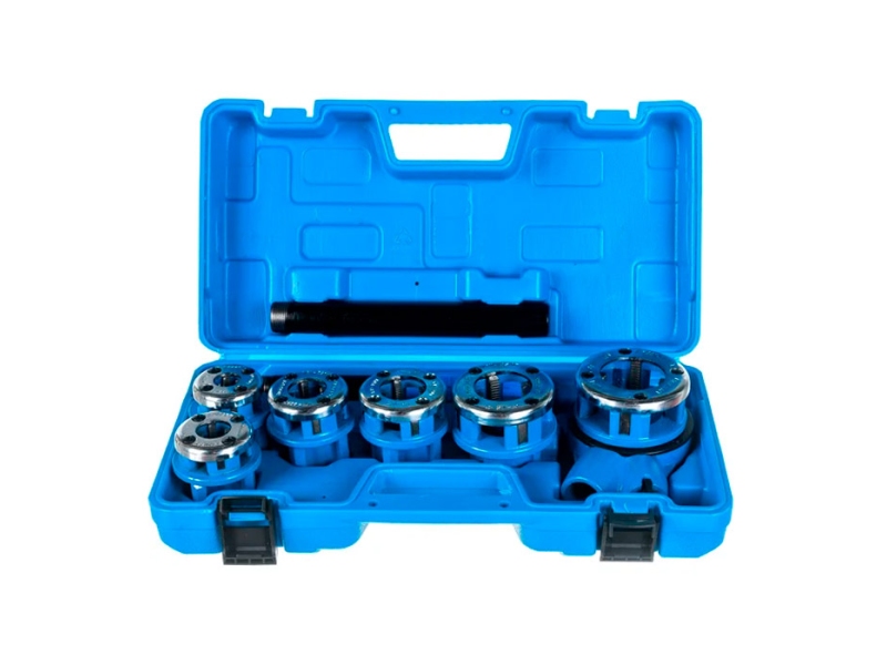 Set de suruburi pentru filetare HOEGERT TECHNIK 1/4 - 5/4 HT1P635 - pentru tăierea profesională a filetelor interioare și externe pe țevi și tije de diferite diametre. Acest set este o soluție ideală pentru lucrări în construcții, instalații sanitare și inginerie mecanică, oferind tăierea filetului de înaltă calitate și durabilitatea sculei.