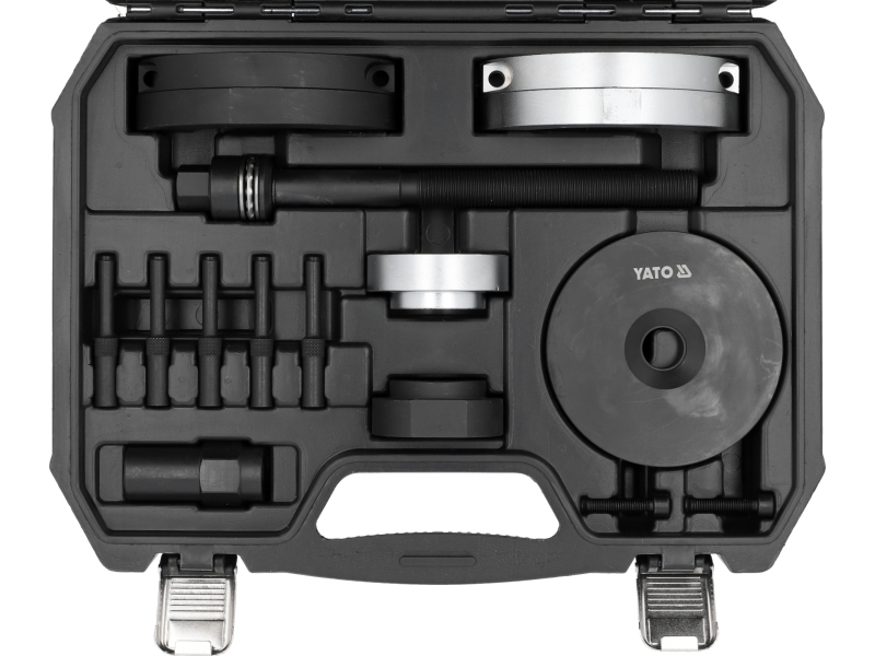 Trusa de scule YATO YT-25394 este concepută pentru demontarea și asamblarea ansamblurilor rulmenților de roată la vehiculele VW, Audi, Seat și Skoda. Reduce riscul de deteriorare în timpul lucrărilor de service datorită unghiului de lucru adecvat. Nu este necesară demontarea componentelor suspensiei.