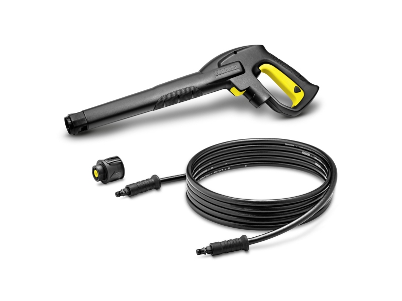 Set-ul include un furtun de 4 metri, pistol ergonomic de înaltă presiune și adaptor cu conectare rapida la aparatul K 2. Set-ul ideal pentru toate aparatele de spalat cu presiune, fabricate începând cu 1992 (cu excepția aparatelor cu tambur pentru furtun).