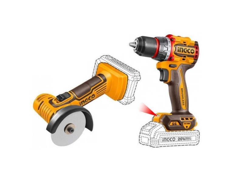 Set masina de insurubat+Polizor unghiular cu acumulator 20V 2*2Ah INDUSTRIAL INGCO CKLI20766
