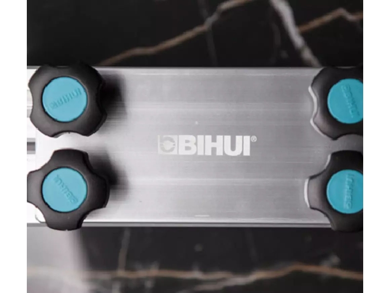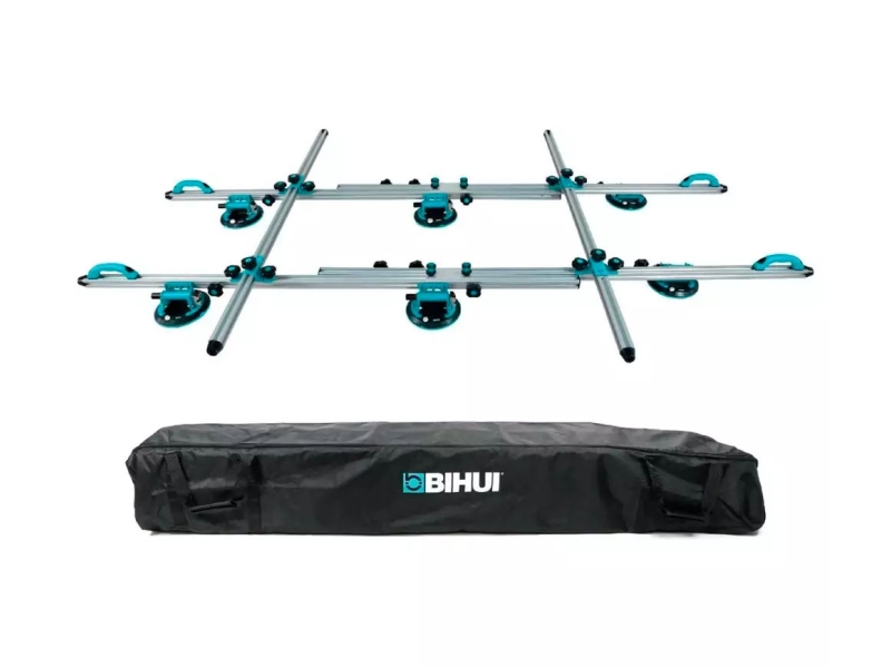 Sistemul de transport BIHUI SLIM TRANS este special conceput pentru ridicarea, manipularea și așezarea plăcilor de format mare cu o lungime maximă de 320 cm, o lățime de până la 160 cm și o greutate de până la 200 kg. Este format din 2 profile telescopice ranforsate din aluminiu extrudat, care pot fi modelate și adaptate la diferite plăci (reglabile de la 165 la 320 cm) și două bare transversale care îmbunătățesc rezistența și stabilitatea sistemului, în special atunci când se manipulează plăci grele. Un singur profil poate fi utilizat pentru transportul plăcilor mici. Sistemul are 4 mânere (2 pe profil), a căror poziție poate fi modificată pe toată lungimea profilului, adaptând sistemul la formatul plăcilor de porțelan. Suportul pentru plăci ceramice de format mare BIHUI SLIM TRANS este echipat cu 6 ventuze de aspirare cu o pompă pneumatică cu diametrul de 203 mm (8 inch). Poziția ventuzelelor este reglabilă, permițând utilizatorului să le poziționeze pentru a manipula piesa de lucru cât mai sigur și confortabil posibil. Ventuzele pompei sunt detașabile și pot fi utilizate separat pentru transportul manual și placare.