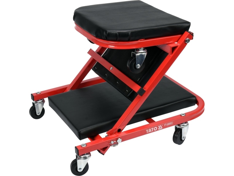 Targa de lucru cu funcție de scaun atelier, 2 în 1. Rama din metal și scaun din plastic prietenos și rezistent. Este echipat cu 6 roți rotative cu rulmenti, ceea ce facilitează manevrarea acestuia. Cu o singură mișcare îl putem transforma într-un scaun practic atelier confortabil.