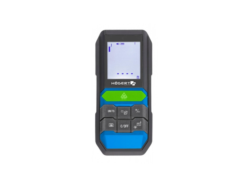 Telemetru cu laser Hoegert HT4M323 - profesional pentru măsurarea distanței, volumului și lungimii intermediare. Folosit în construcții și renovare, convenabil pentru montatorii de mobilă. Precizia ridicată vă permite să efectuați măsurători în timpul lucrărilor interioare și exterioare. Caracteristici suplimentare. Domeniu de aplicare până la 60 m cu o precizie de +/- 3 mm. Posibilitate de masurare a distantelor, suprafata in m2, volum in m3. Adăugați/scădeți dimensiuni. Calcul folosind teorema lui Pitagora. Schimbarea punctului de măsurare față/spate. Schimbați unitățile de măsură: m, picioare, inci. Memorie pentru 30 de măsurători.
