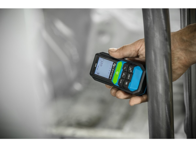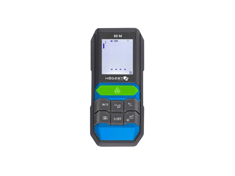 Telemetru cu laser Hoegert HT4M324 - profesional pentru măsurarea distanței, volumului și lungimii intermediare. Folosit în construcții și renovare, convenabil pentru montatorii de mobilă. Precizia ridicată vă permite să efectuați măsurători în timpul lucrărilor interioare și exterioare. Caracteristici suplimentare. Domeniu de aplicare până la 80 m cu o precizie de +/- 3 mm. Posibilitate de masurare a distantelor, suprafata in m2, volum in m3. Adăugați/scădeți dimensiuni. Calcul folosind teorema lui Pitagora. Schimbarea punctului de măsurare față/spate. Schimbați unitățile de măsură: m, picioare, inci. Memorie pentru 30 de măsurători.