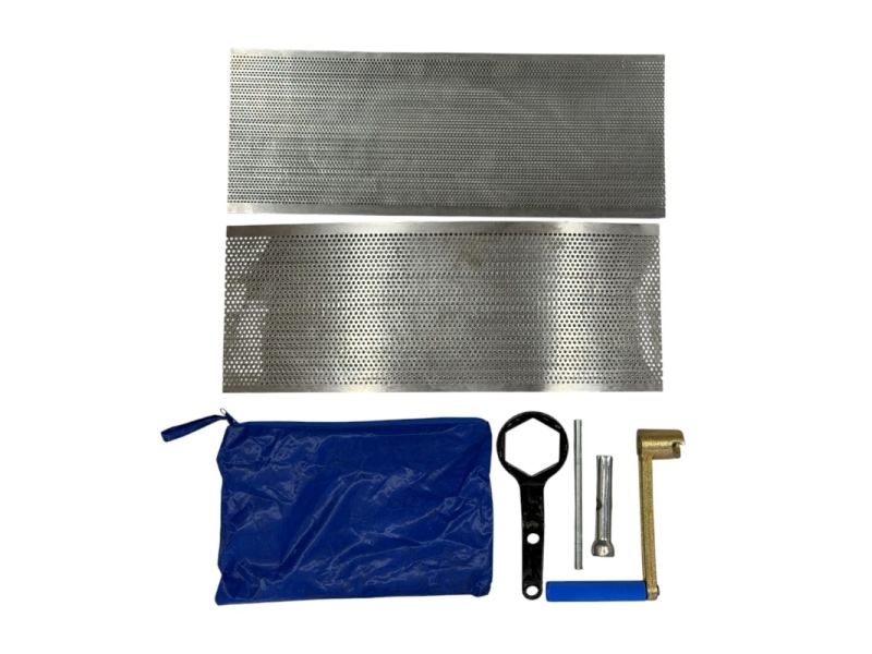 Complectatie: Sac textil pentru colectarea furajului; Mănuși de protecție; Site metalice pentru măcinare – 2 bucăți; Sac pentru accesorii; Cheie tubulară; Cheie fixă; Cheie tip L; Știft de fixare