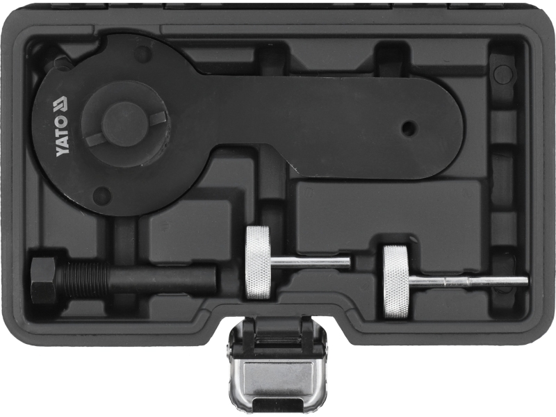 Trusa specializată de scule YATO YT-060171 pentru reglarea sincronizării supapelor la motoarele VAG 1.2 și 1.4 TSI/TFSI, inclusiv funcția de dezactivare a cilindrilor ACT/COD. Vă permite să fixați arborele cu came la verificarea și reglarea sincronizării supapelor.