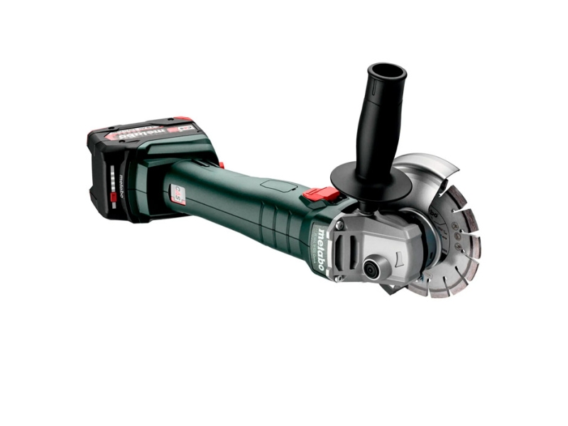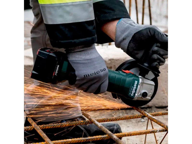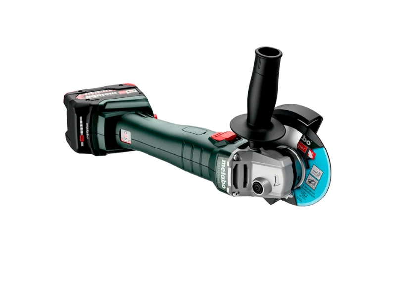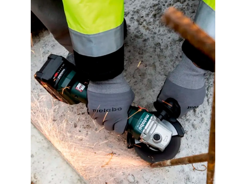 Аккумуляторная угловая шлифмашина Metabo W 18 L 9-125 Quick (602249650) - это легкая, компактная и очень удобная в работе угловая шлифмашина, которая оборудована мощным двигателем и надежным редуктором, для работ различной сложности. Щеточный мотор высокой мощности, которая сопоставима с мощностью сетевой болгарки на 900 Вт. Плавный пуск, гарантирует запуск инструмента без рывков. Электроника аварийного отключения двигателя, снижает отдачу при внезапном заклинивании диска в материале. Данная функция, значительно повышает уровень безопасности пользователя, во время работы. Защита от повторного включения, не даст запуститься инструменту если села батарея, а пользователь, забывши, выключить кнопку включения, меняет батарею на заряженную. Максимального удобства в работе, позволяет добиться поворотный корпус редуктора с шагом 90°, относительно корпуса мотора. Быстрозажимная гайка Metabo Quick, оперативно и просто, менять диски без применения дополнительного инструмента. Защитный кожух регулируется и снимается без помощи ключа, что значительно упрощает эксплуатацию. Кнопка блокировки шпинделя, для простоты смены оснастки.