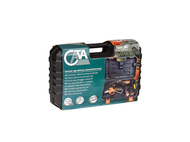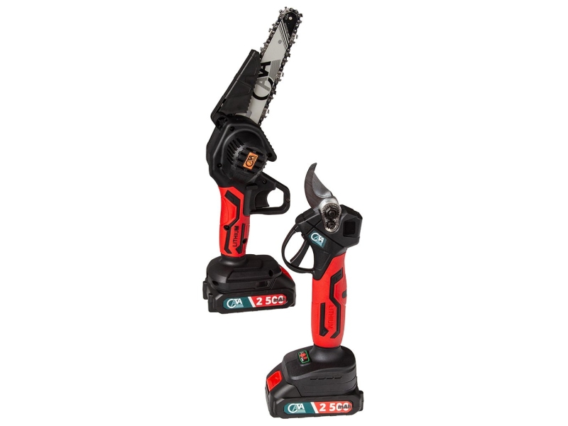 Превратите свой сад в ухоженное и аккуратное пространство с этим практичным и эффективным набором. В комплекте есть всё необходимое для точной и быстрой работы: мини-пила с цепью, аккумуляторные садовые ножницы, шина 8″, цепь, 2 мощные аккумуляторные батареи 21 В / 2500 мА·ч, зарядное устройство, кейс для переноски, точильный камень и набор сервисных ключей.