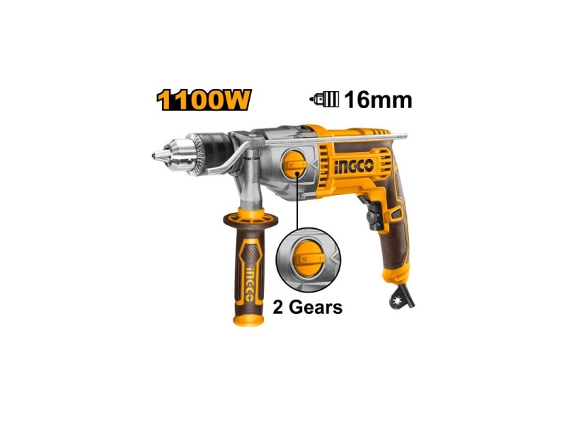 Ударная дрель INGCO ID211008 1100Вт, 2 механические скорости