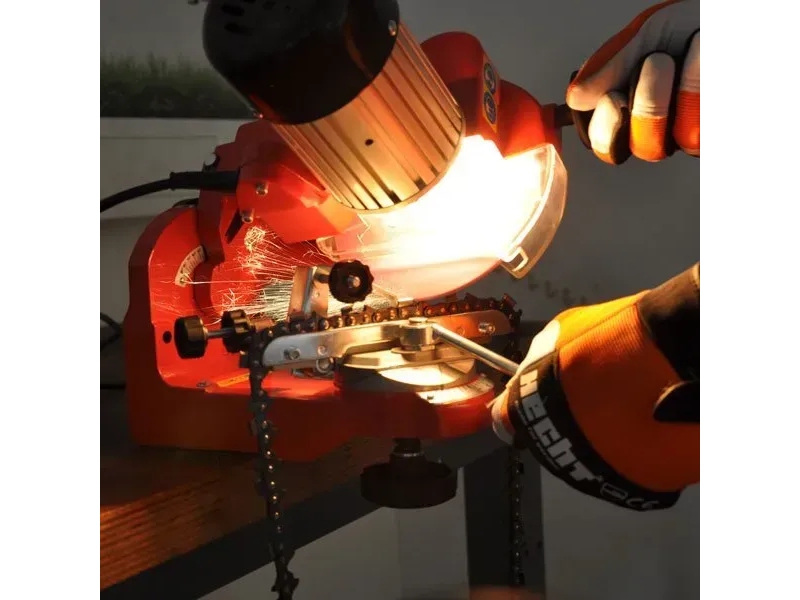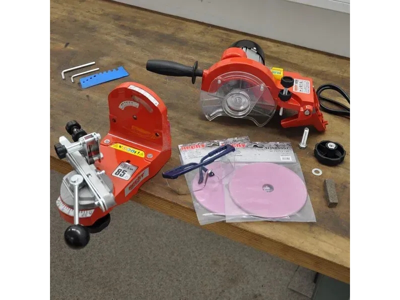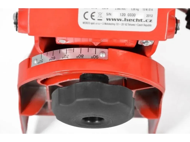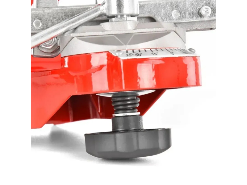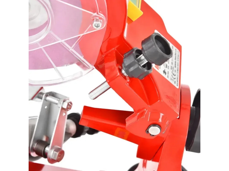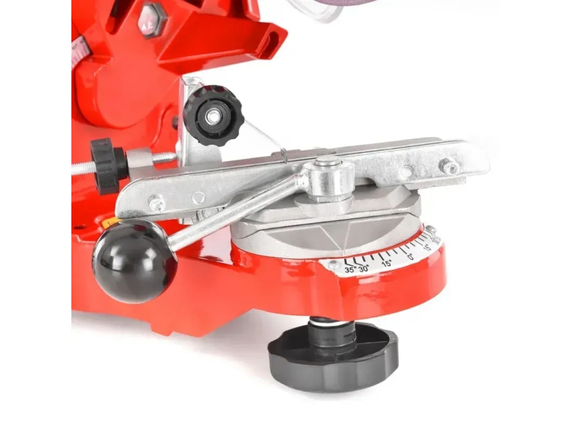 Изменение угла заточки по вертикали в диапазоне 50–90° (обычно 60°) путем наклона моторного рычага (указывается угол между поверхностью диска и горизонтальной плоскостью)