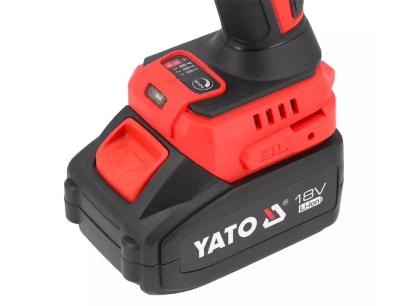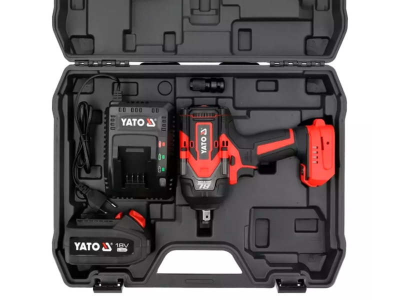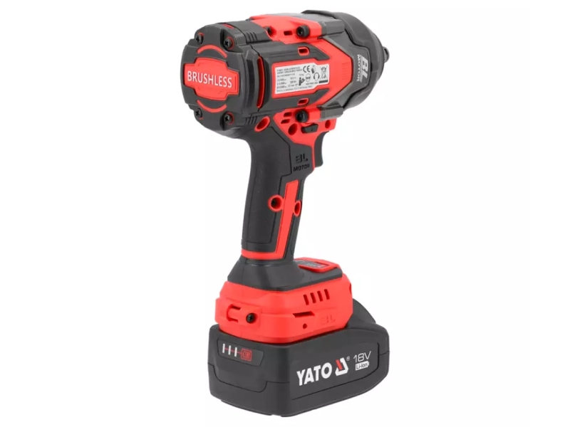 Бесщеточный ударный гайковерт с питанием от платформенного аккумулятора YATO 18 В. Благодаря компактным размерам и крутящему моменту 1200 Нм его можно использовать как в автосервисах, так и на строительных площадках. Небольшой вес позволяет комфортно работать с поднятым над головой ключом. Инструмент поставляется с адаптером от 1/2 до 1/4 дюйма.