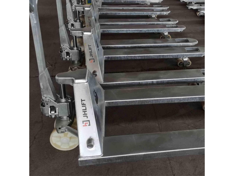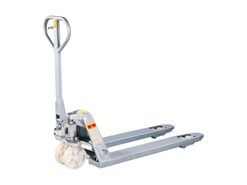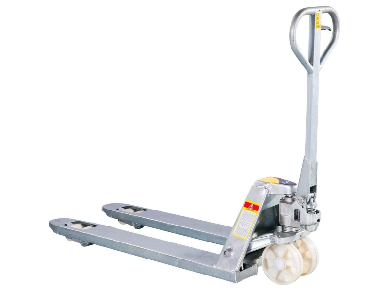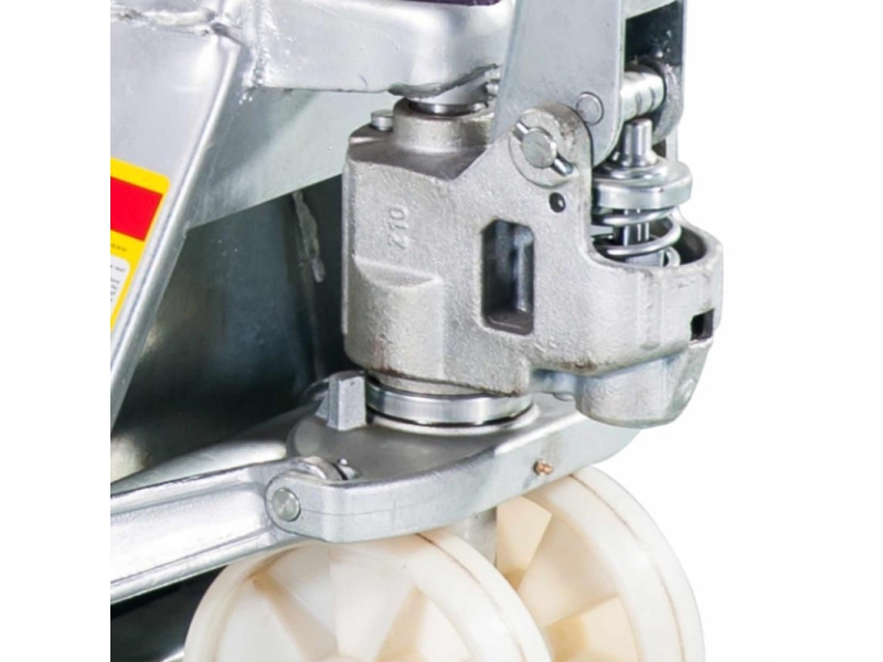 Гидравлическая тележка грузоподъёмностью 2500 кг устойчива к холоду, влаге и коррозии благодаря гальванизированному покрытию.