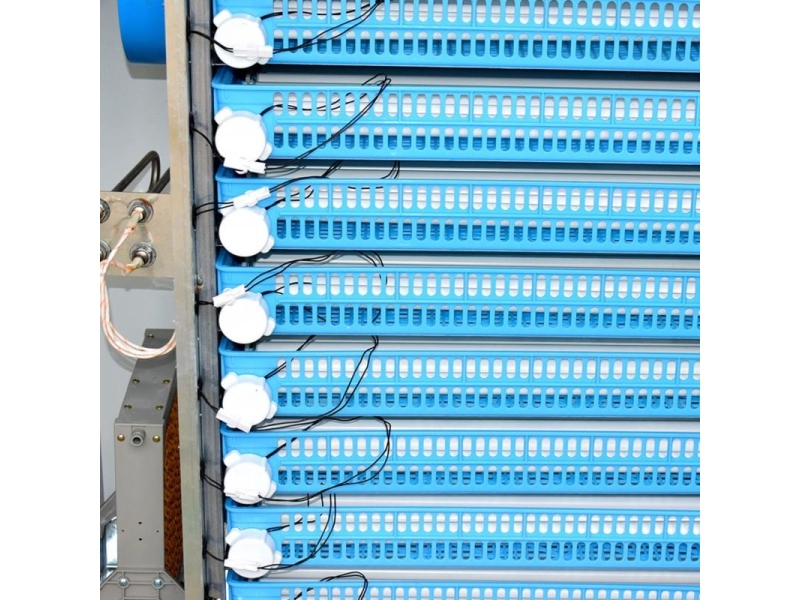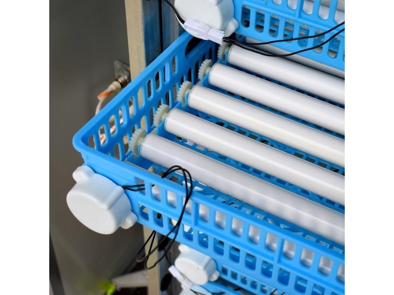 Оснащен 10 лотками, каждый из которых подключен к отдельному мотору для переворачивания яиц.