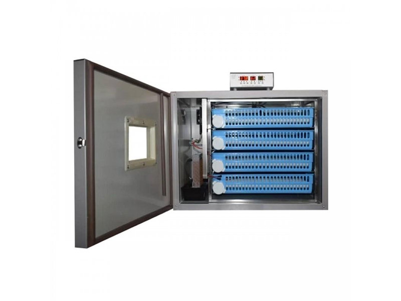 Дверь оснащена термостойким стеклом, что позволяет наблюдать за яйцами без необходимости открывать дверь инкубатора, сохраняя стабильные внутренние параметры.