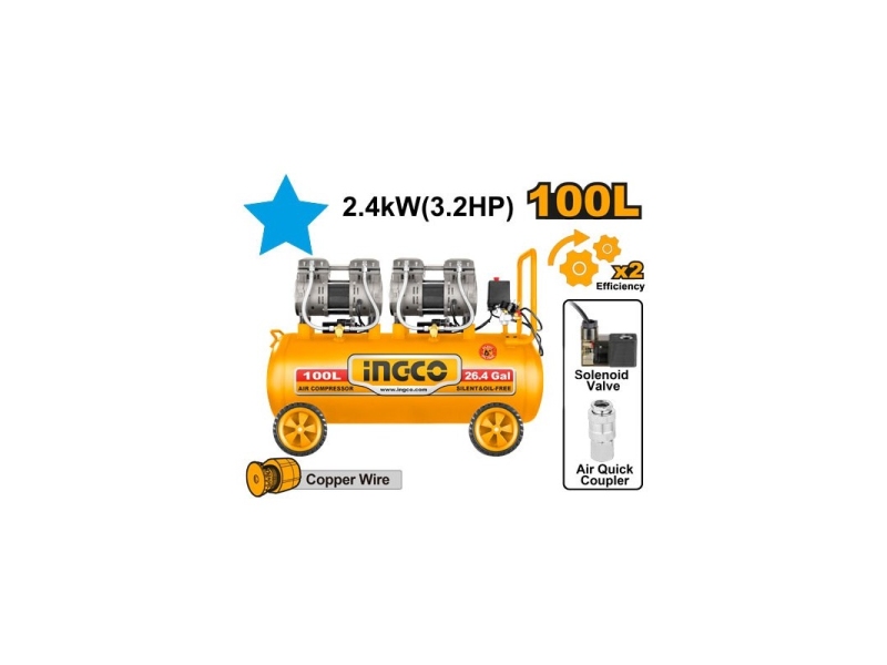 Компрессор без маслянный INGCO ACS2241001 (с низким уровнем шума)100л 2400W