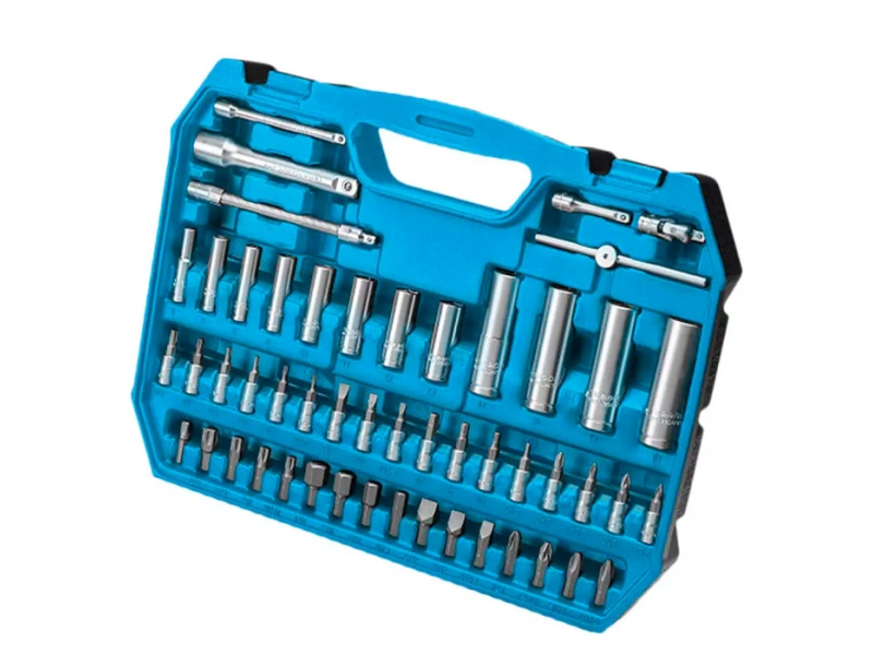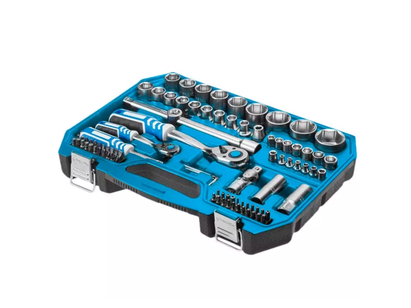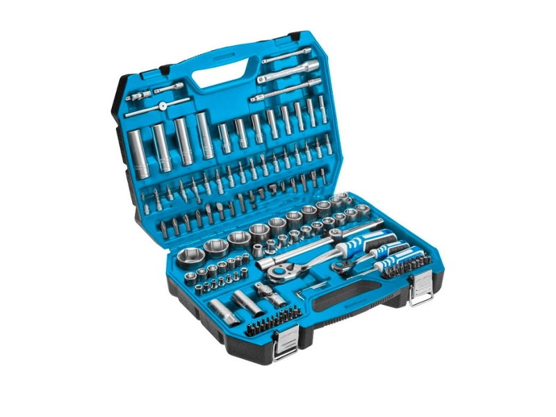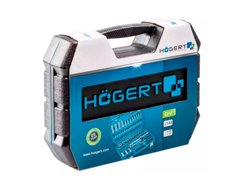 Набор головок и принадлежностей Hoegert HT1R440 144 шт - Набор торцевых головок, отверточных бит, аксессуаров 1/4", 1/2". Торцевые головки, биты и аксессуары изготовлены из высококачественной легированной стали CrV. Устойчивы к интенсивным нагрузкам. Изготовлены ковкой. Храповик трещотки с 72 зубьями изготовлен из легированной стали CrMo увеличивающей долговечность механизма и точность работы.