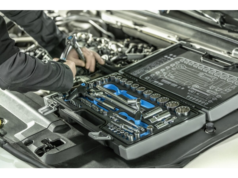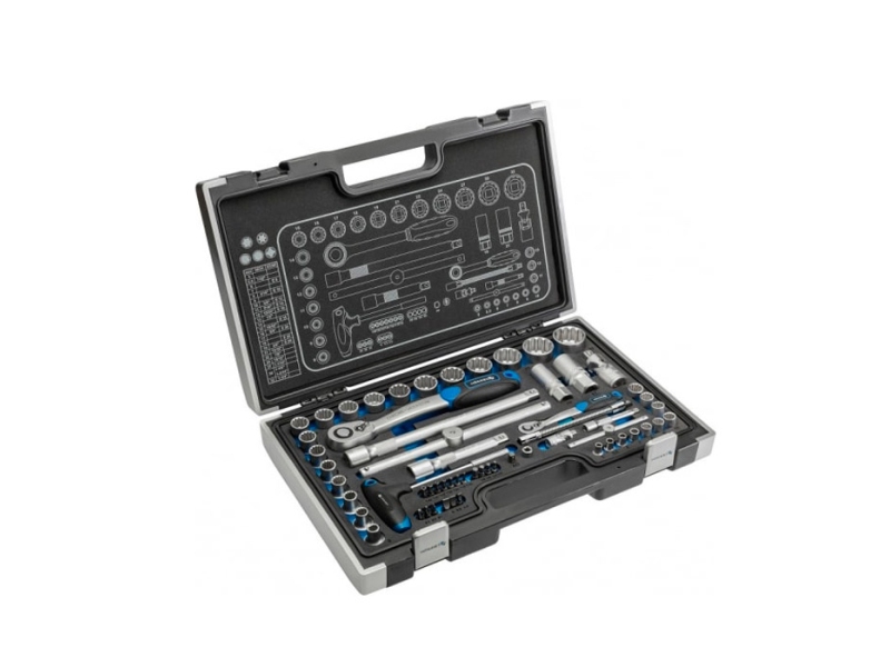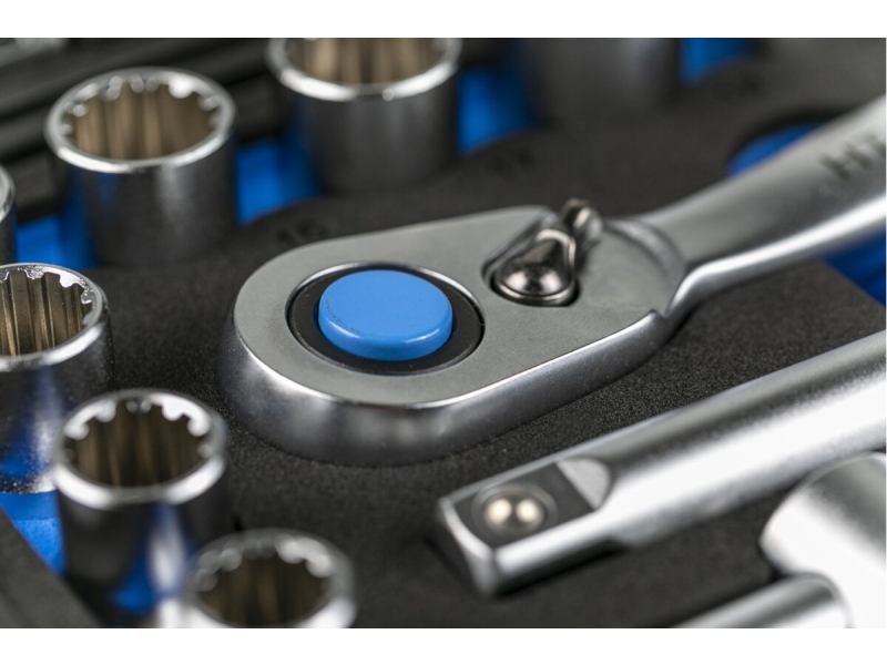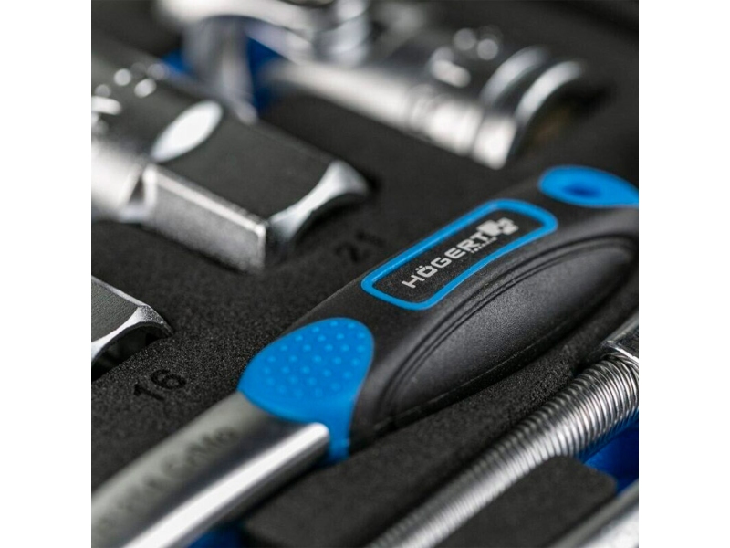 Набор головок и принадлежностей Hoegert HT1R470 60 шт - подойдет для сборочных мастерских, автосервисов, а также для частного использования. Поставляется в прочном пластиковом кейсе с индивидуальными позициями. Биты выполнены из стали S2, которая обладает высокой прочностью и стойкостью к разломам и разрывам. Трещотка оснащена двухкомпонентной накладкой.