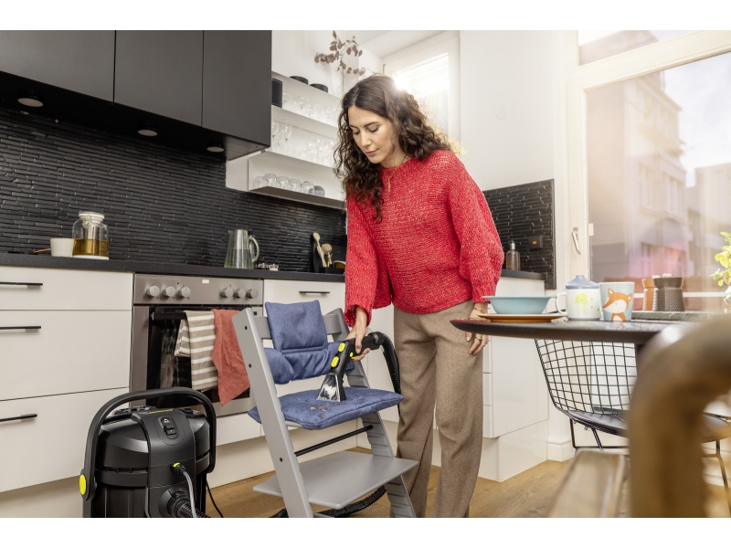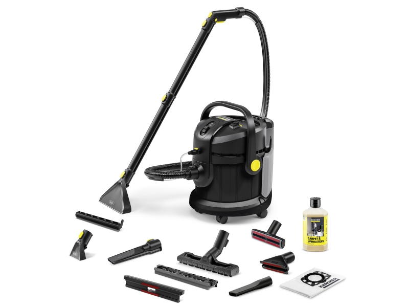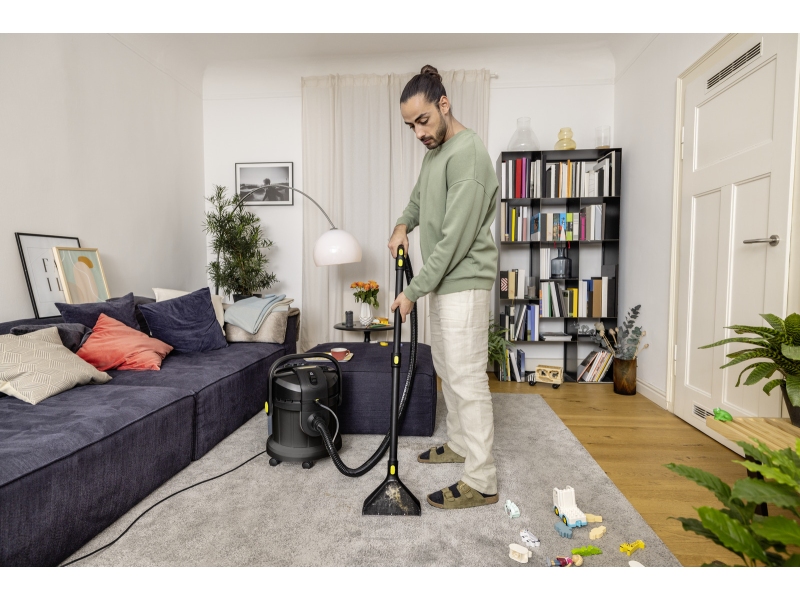 Пылесос с струйной экстракцией, идущий на шаг вперед – лимитированная серия SE 4 Go!Further в черном цвете, изготовленная на 25% из переработанного пластика¹⁾ и оснащенная эксклюзивными аксессуарами, обеспечивает превосходные результаты уборки и высокий уровень комфорта для пользователя. Привлекательный дизайн пылесоса SE 4 с струйной экстракцией гарантирует гигиеничную очистку глубоко в волокнах широкого спектра текстильных поверхностей. Проверенная технология струйной экстракции Kärcher гарантирует оптимальные результаты: чистая водопроводная вода и средство для чистки ковров Kärcher Carpet Cleaner RM 519 распыляются под давлением глубоко в текстильные волокна, а затем всасываются вместе с растворенной грязью – идеальное решение для семей, аллергиков и домов с домашними животными. Устройство представляет собой многофункциональный продукт 3-в-1 и может также использоваться как полноценный пылесос для сухой и влажной уборки. Большой 4-литровый резервуар для чистой воды прозрачный, ударопрочный и съемный, что облегчает его наполнение и опорожнение. Универсальная ручка «3 в 1» позволяет легко переносить, открывать, закрывать и опорожнять контейнер. Входящие в комплект аксессуары можно аккуратно хранить непосредственно на устройстве. После использования устройство легко чистить, что способствует увеличению срока службы изделия.
