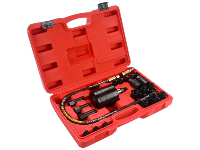 Пневматический съемник форсунок это специализированный инструмент, который используется в гаражах для снятия топливных форсунок с двигателя.