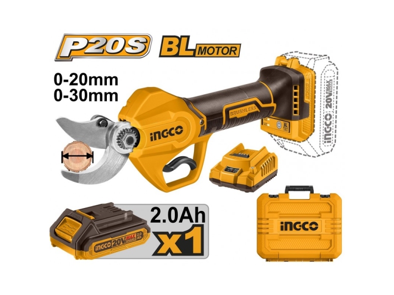 Секатор садовый с аккумулятором 20V/1*2A INGCO CSSLI203083