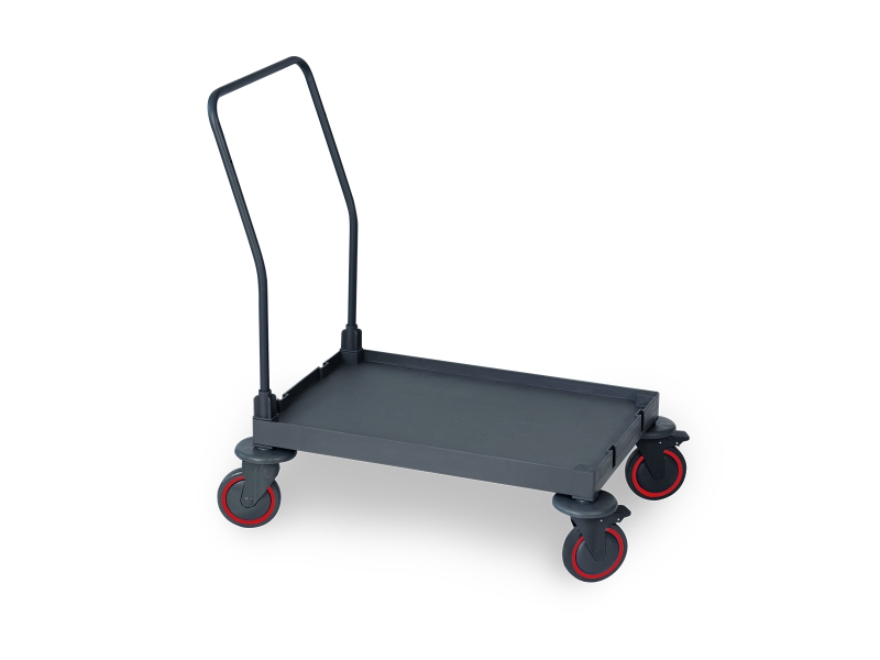 Тележка изготовлена из прочного CPP корпуса толщиной 6 мм. Размеры изделия составляют 53 × 91 × 101 см, вес — 6,5 кг. Конструкция выдерживает нагрузку до 120 кг. Оснащена четырьмя колесами Ø150 мм: двумя с тормозами и двумя без тормозов с амортизатором. Управление осуществляется с помощью прочной односторонней рукоятки.