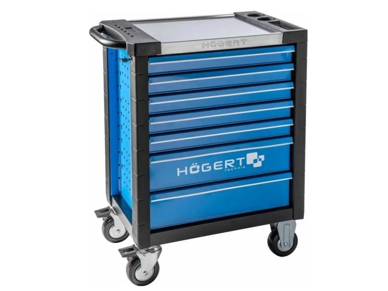 Инструментальная тележка HOEGERT HT7G051 — надежное решение для хранения и транспортировки инструментов и аксессуаров. Оснащена 7 выдвижными ящиками с комплектом из 346 высококачественных инструментов внутри.