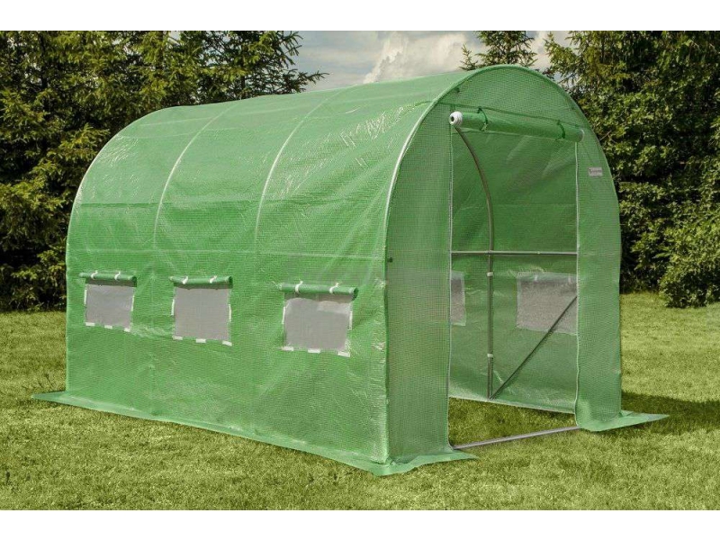 Теплица легко собирается и разбирается. Конструкцию можно без труда переместить в более удобное место. Дополнительный слой земли по нижнему краю делает ее более устойчивой и защищенной от ветра. Кроме того, специальные грунтовые анкеры помогают удерживать конструкцию даже при самых сильных погодных условиях.