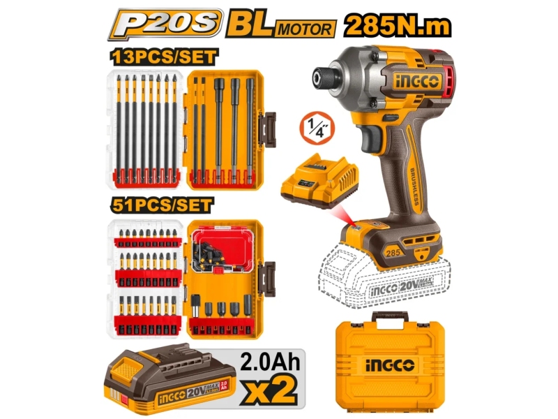 Набор Шуруповерт аккумуляторный+винтовёрт ударный INGCO Li-Ion 20V/2*2A CKLI20277