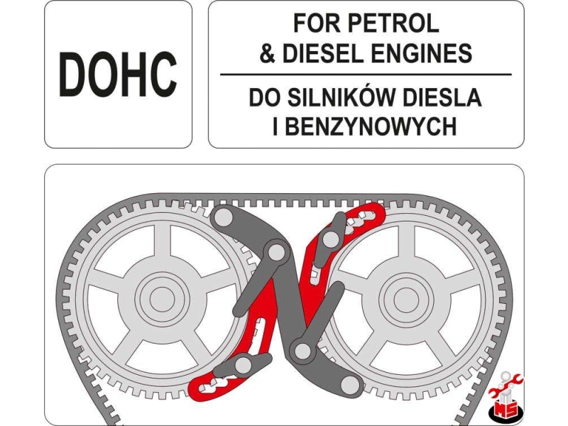 Профессиональное блокирующее устройство, предназначенное для блокировки двойных верхних распределительных валов (DOHC) в дизельных и бензиновых двигателях. Рекомендуется для специализированных автомобильных сервисов.