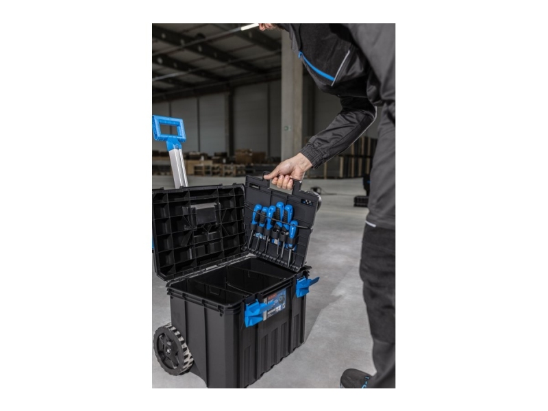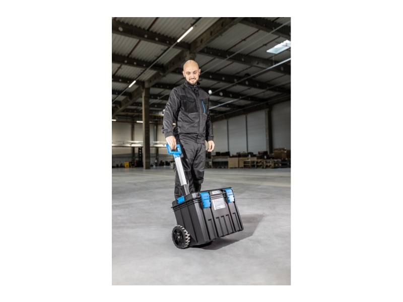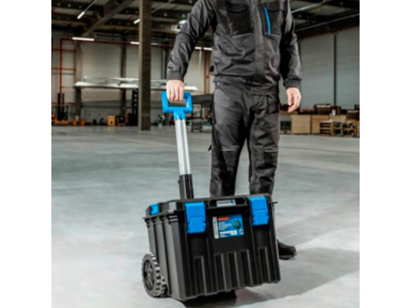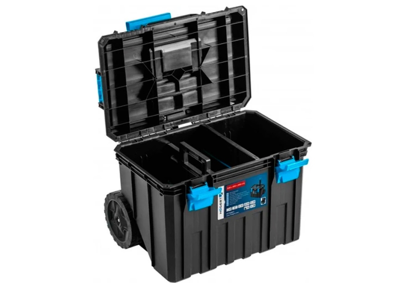 Ящик для инструментов на колесах HOEGERT TECHNIK HT7G501 530х355х390 мм - изготовлен из сверхпрочного пластика, отличающегося исключительной устойчивостью к механическим повреждениям. Проведенные ударные испытания подтверждают его долговечность. Изделие представляет собой вместительный мобильный ящик для инструментов, оснащенный большими колесами, установленными на металлической оси. Ящик оснащен телескопической ручкой из анодированного алюминия. Для лучшей организации внутреннего пространства ящик оборудован двумя отделениями с возможностью крепления инструмента.