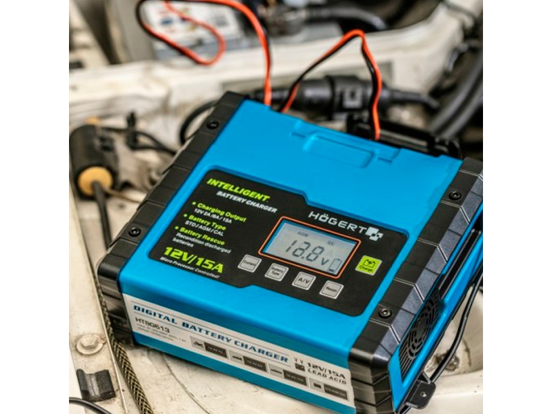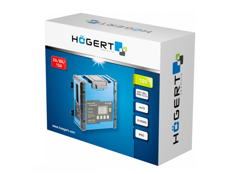 Зарядное устройство Hoegert HT8G613 - устройство для зарядки 12-вольтовых аккумуляторов мотоциклов, легковых автомобилей и микроавтобусов, жилых трейлеров, квадроциклов, моторных лодок, тракторов, а также садовой техники. зарядное устройство обеспечивает зарядку обычных свинцово-кислотных аккумуляторов, аккумуляторов с жидким электролитом или MF, серных (WET), кальциевых (Ca-Ca), а также необслуживаемых аккумуляторов (AGM и GEL) : - встроенный амперметр позволяет постоянно контролировать процесс зарядки;